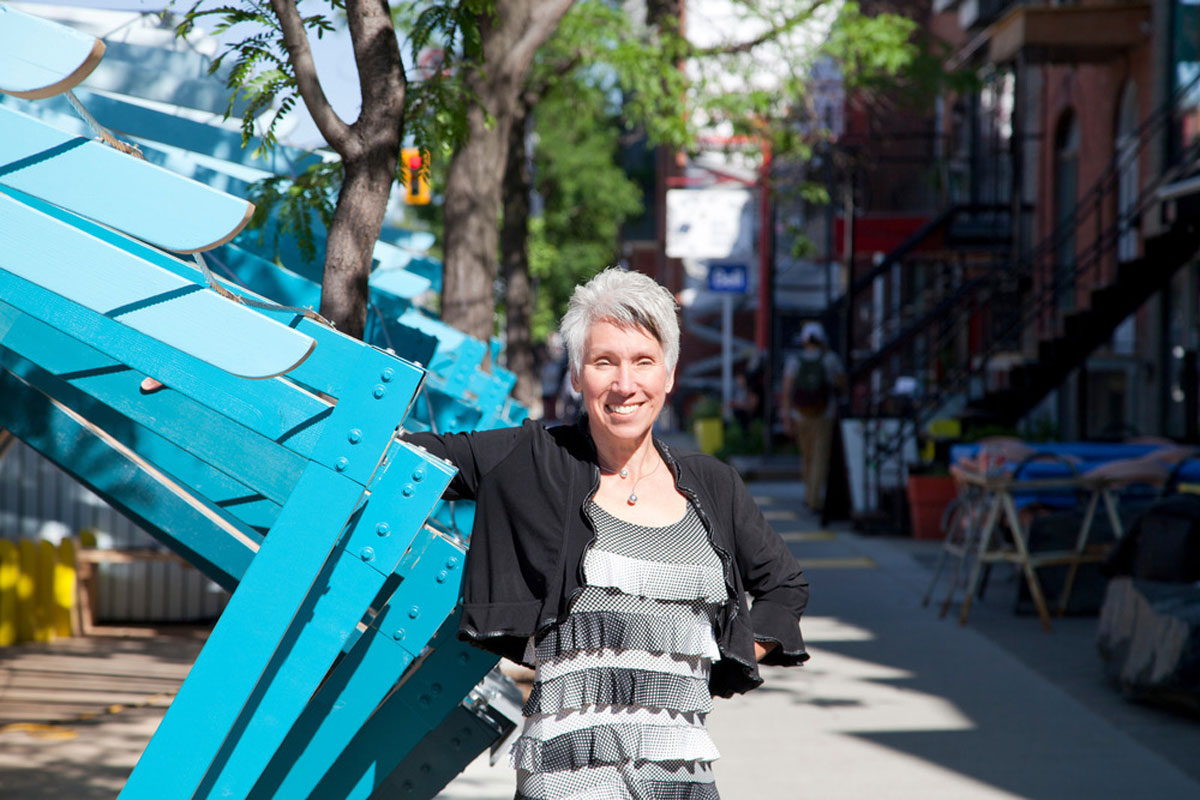 Conceived in San Francisco in 2007, the Parklet (small park) temporarily expands a sidewalk into parking spaces, creating a private or public space for relaxing and socializing. The term “placottoir” (a place to chat) is generally used in the Montreal area to describe a public space that is given back to pedestrians.
